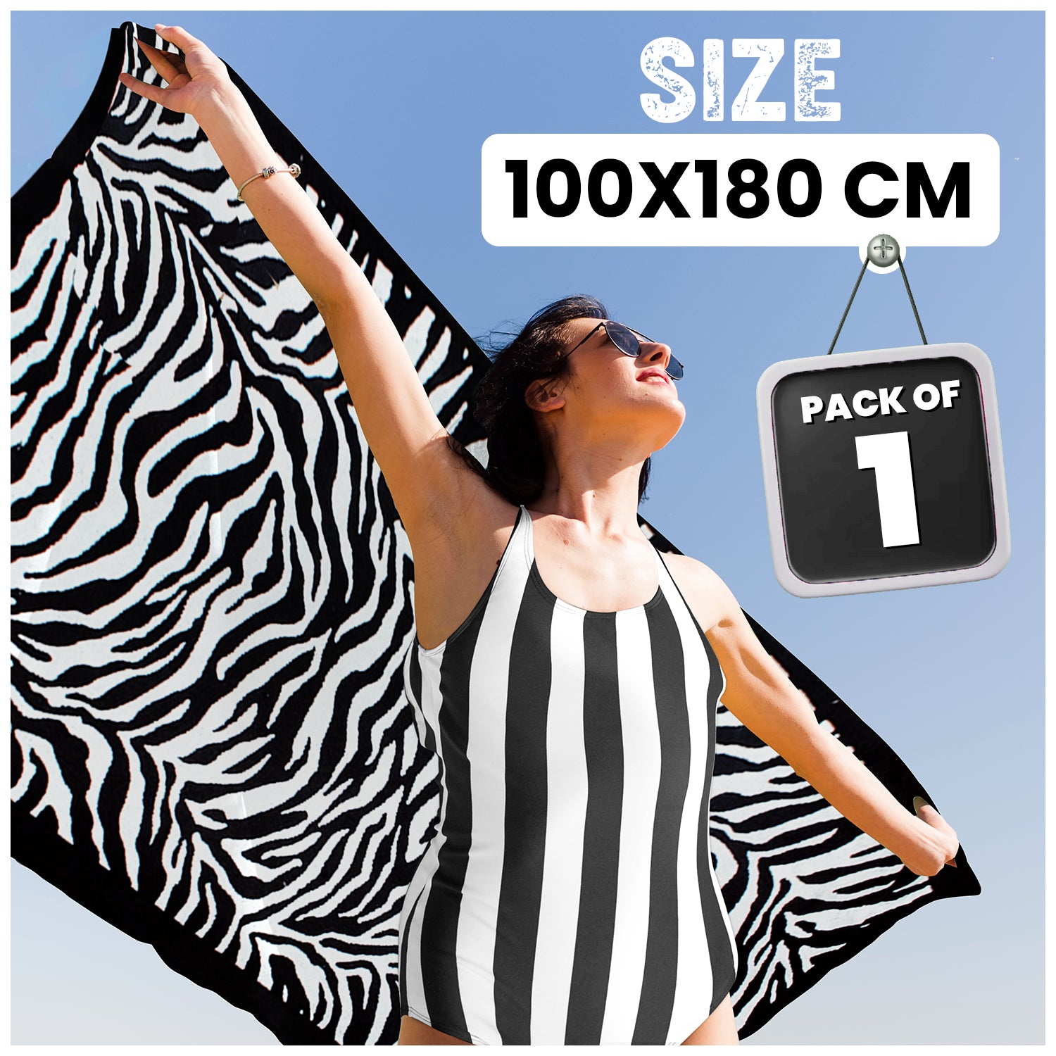 Measuring approximately 100 × 180 cm, this beach towel offers ample space for lounging, sunbathing, or drying off after a swim. Despite its generous size, it is lightweight (500 GSM) and easy to carry. The thick, durable pile feels luxuriously soft against your skin while being highly absorbent. Even after multiple washes, this towel maintains its size and softness, ensuring it remains safe for you, your family, and the environment.