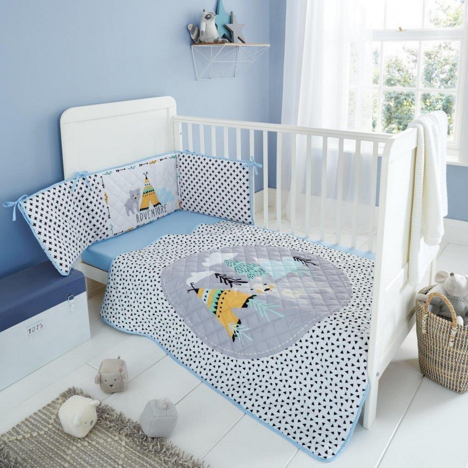 Introduce your little one to a world of adventure with our Kids Mountain Adventure Bumper Set. Featuring a captivating design of a bear beside a tepee against a backdrop of mountains and trees, this bumper set is both enchanting and practical.