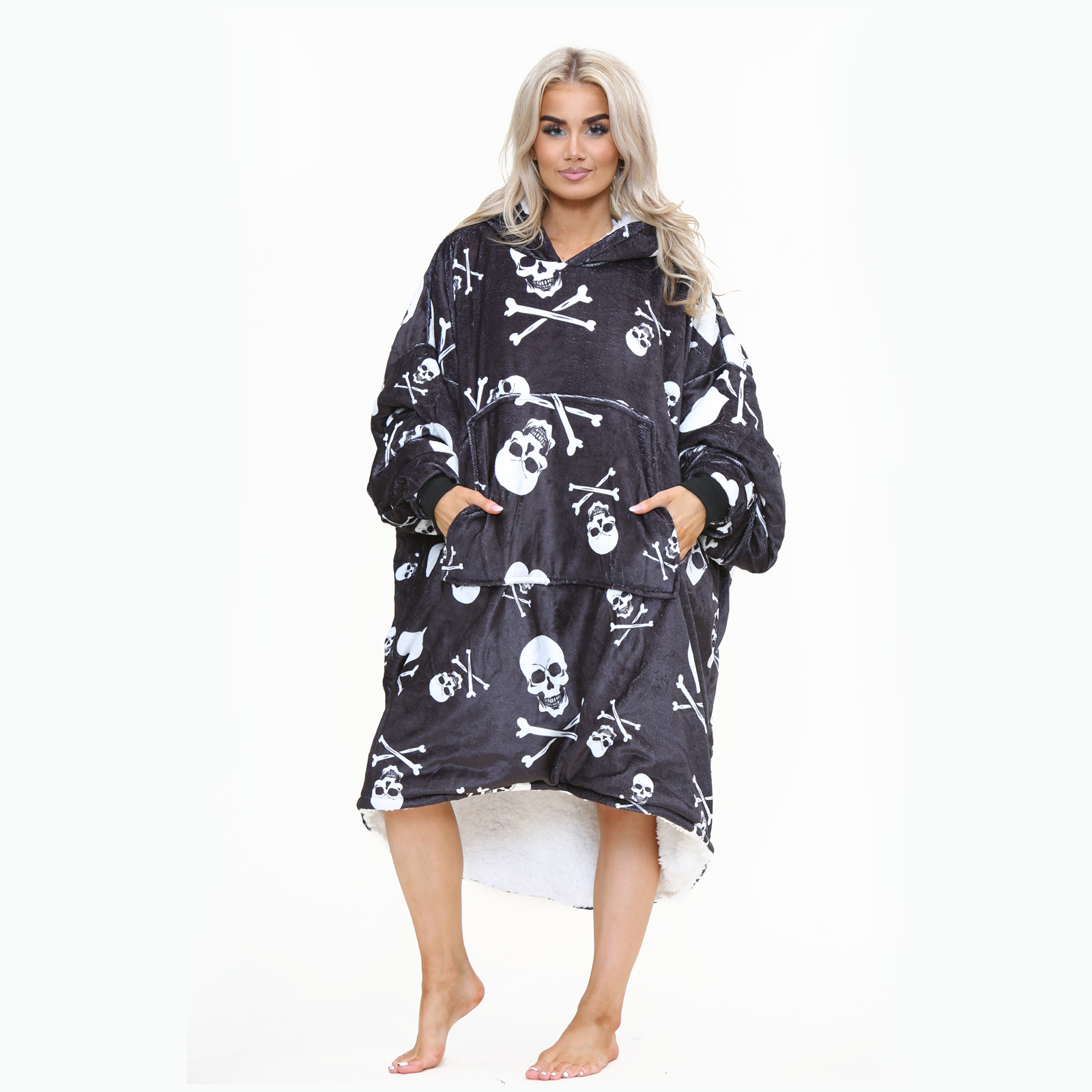Experience ultimate comfort and warmth with the Skulls Adult Black Hoodie, designed to keep you cozy and stylish all day long. Perfect for lounging at home or running errands, this oversized hoodie combines the functionality of a blanket with the convenience of a sweatshirt.