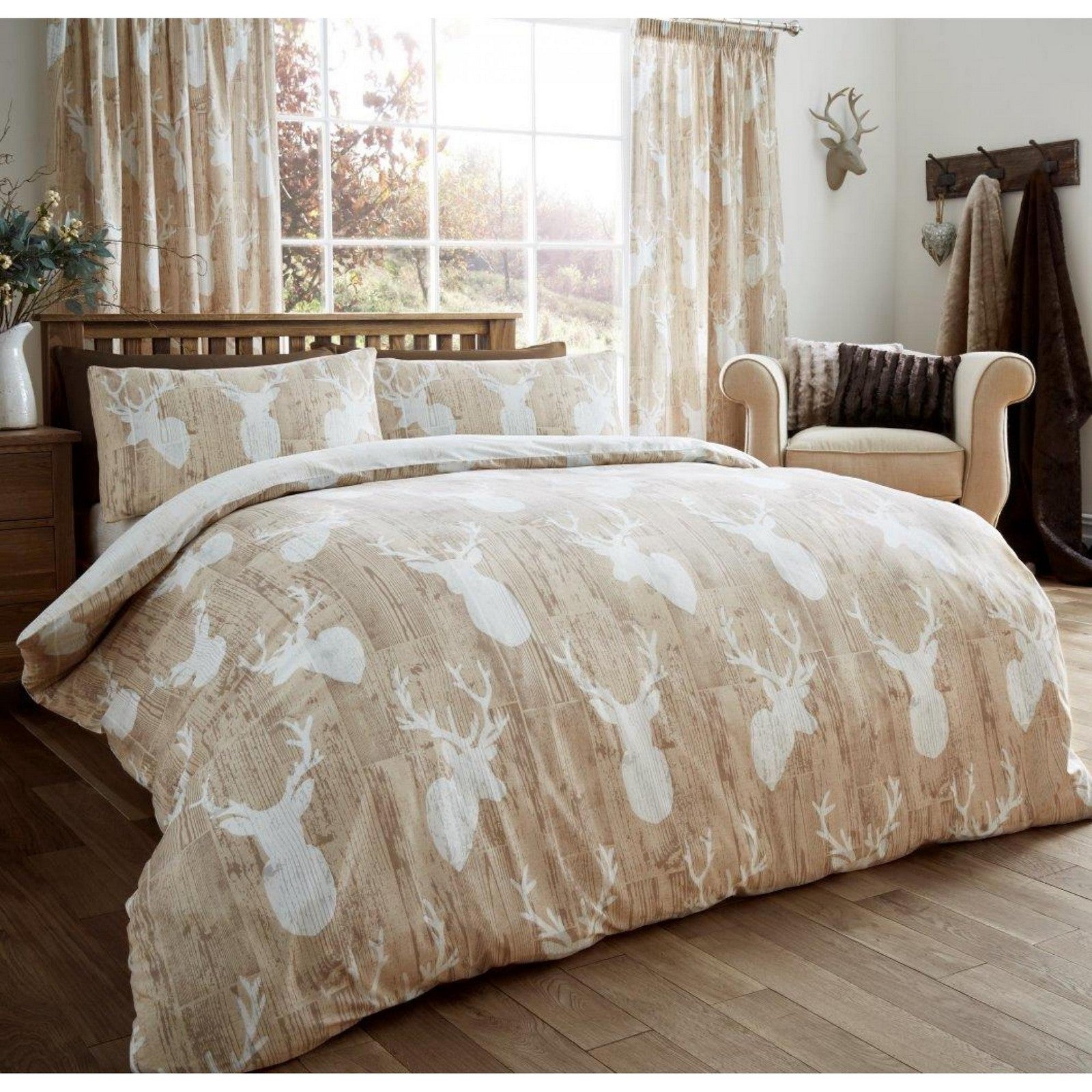 - Stylish Animal-Themed Bedding: Features elegant stag head designs on a wooden floor background.